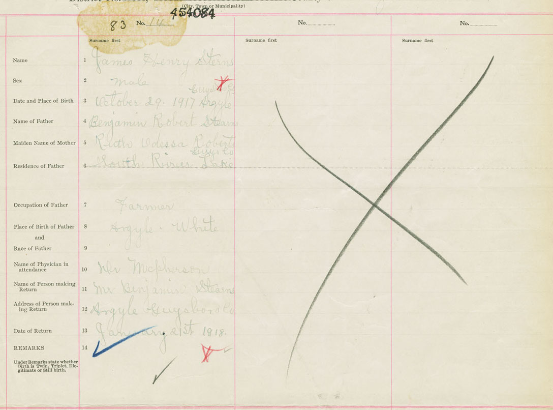 Male Birth Registration: Year: 1917 number: 45400084