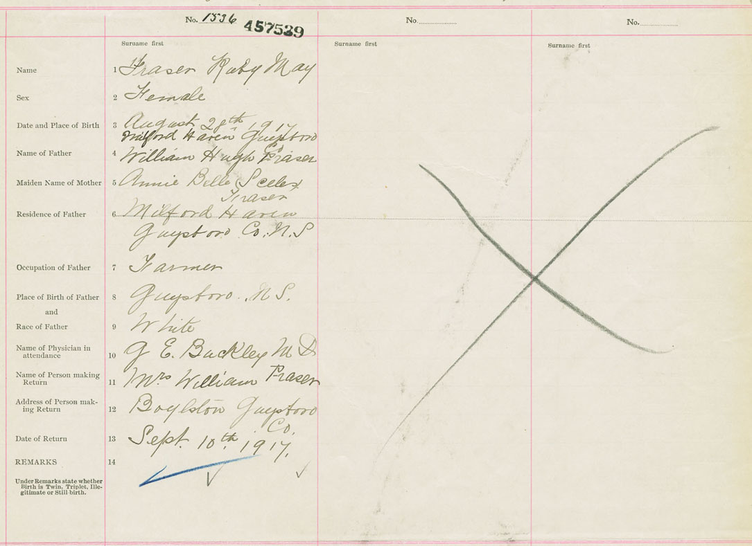 Female Birth Registration: Year: 1917 number: 45700539
