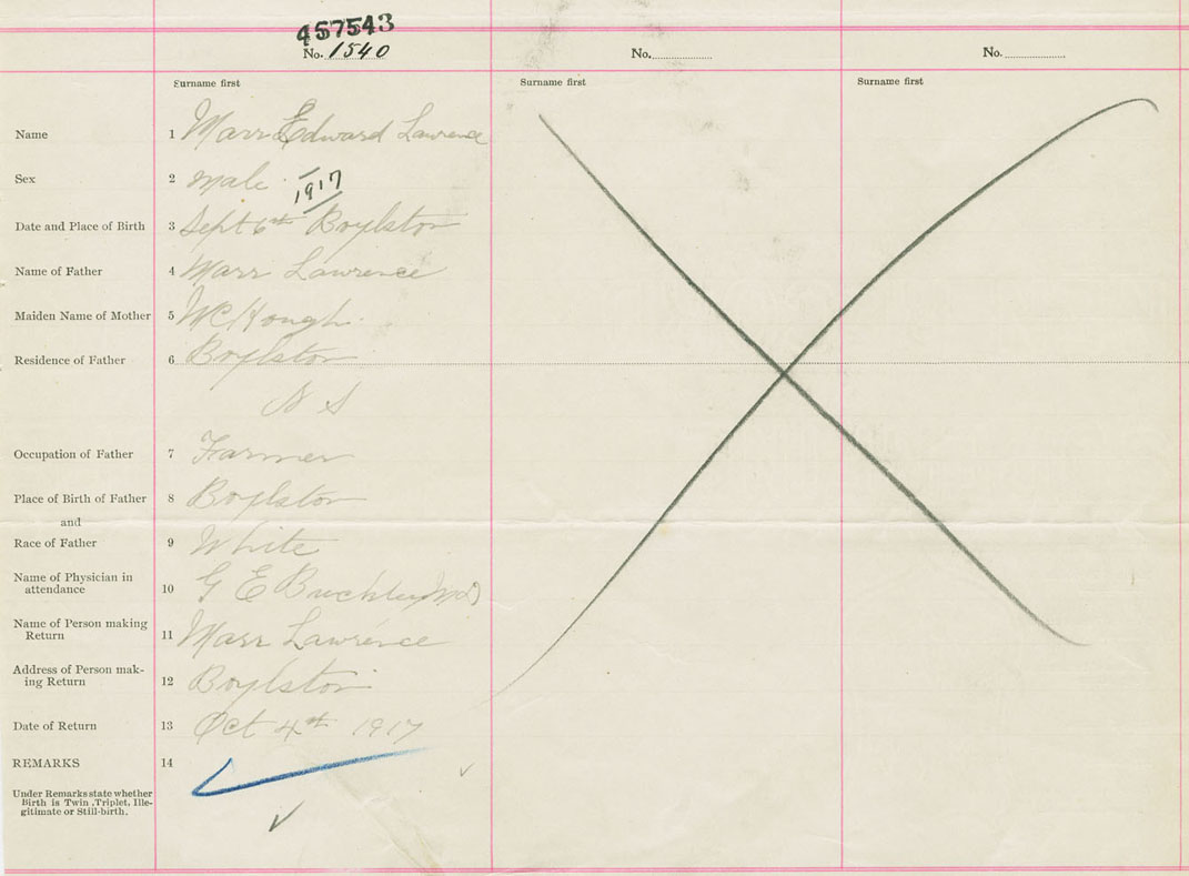 Male Birth Registration: Year: 1917 number: 45700543