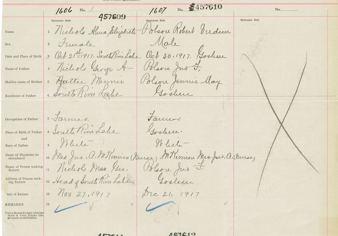 Female Birth Registration: Year: 1917 number: 45700609