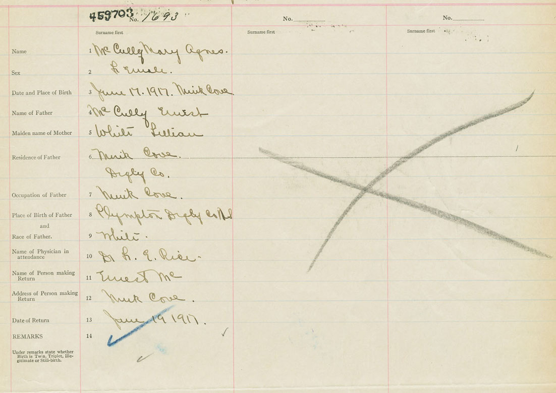 Female Birth Registration: Year: 1917 number: 45900703