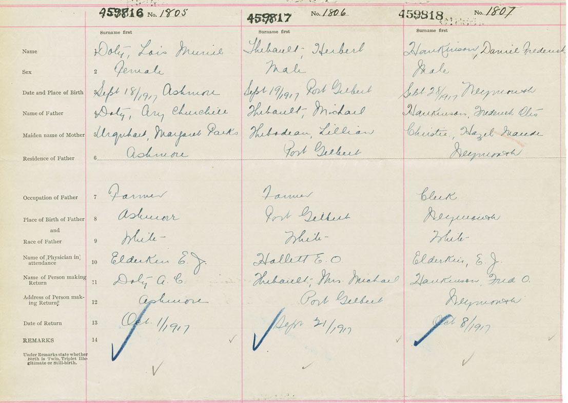 Female Birth Registration: Year: 1917 number: 45900816