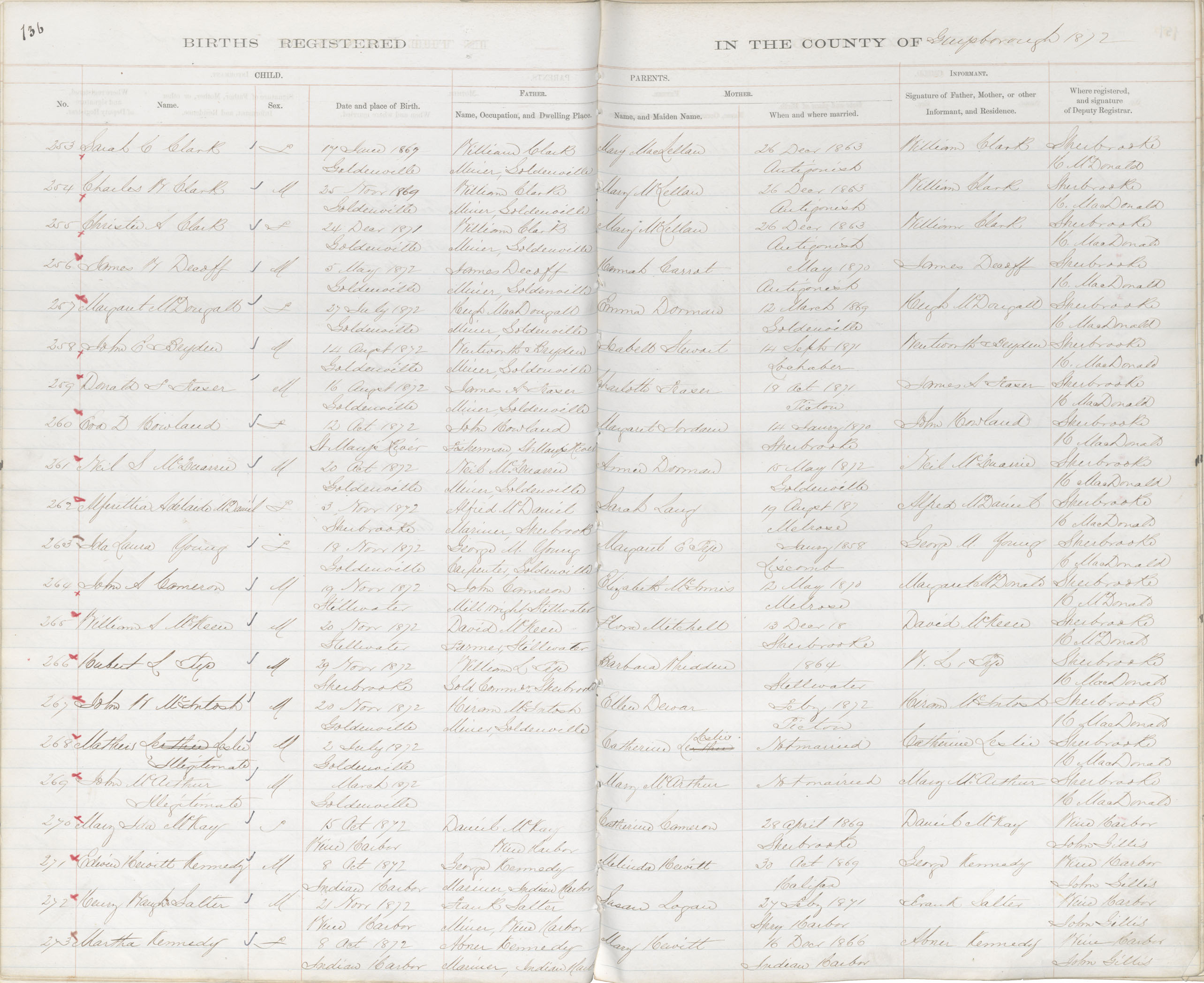 Birth Registration: Year: 1872 book: 1808 page: 136 number: 273