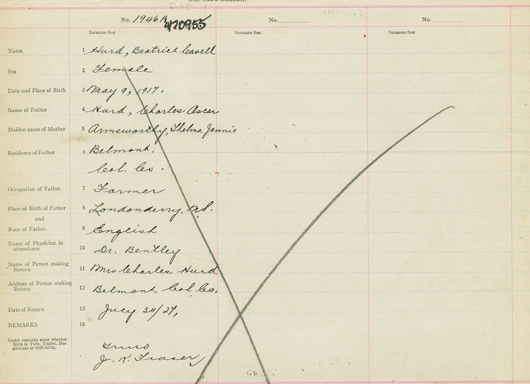 Female Birth Registration: Year: 1917 number: 47000955