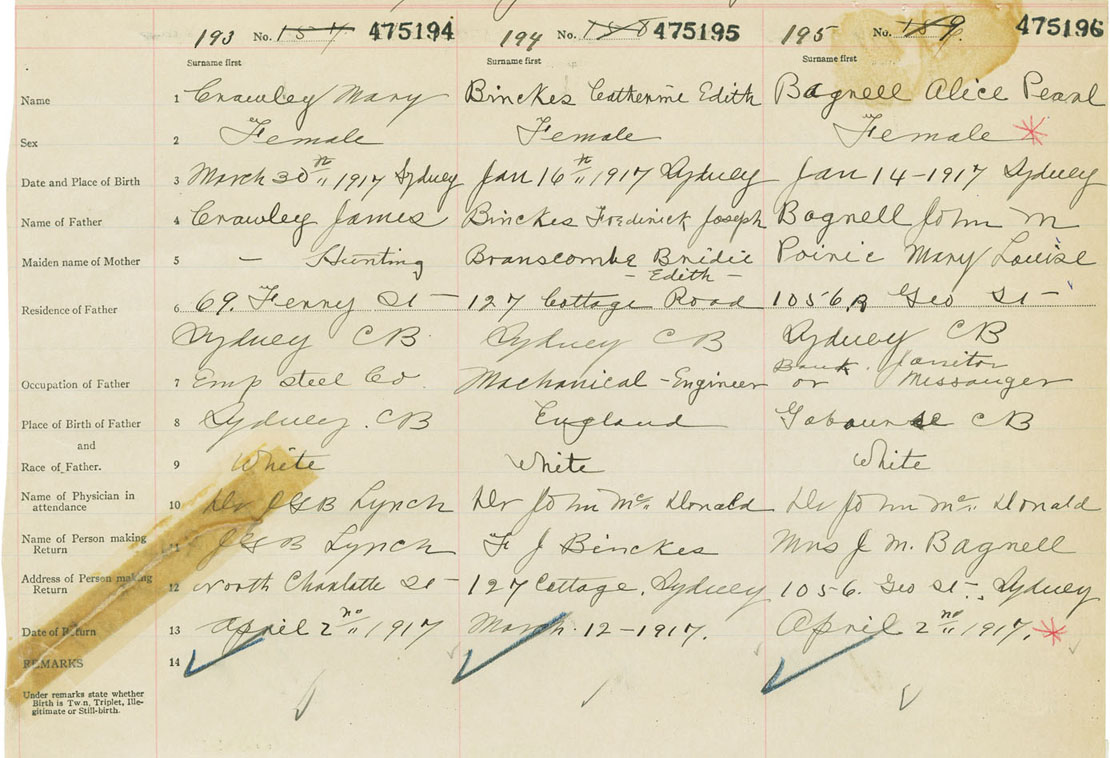Female Birth Registration: Year: 1917 number: 47500196