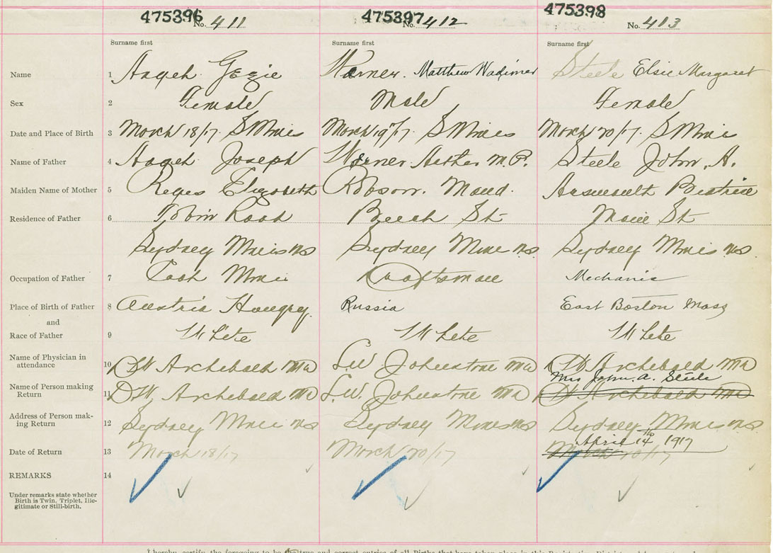 Female Birth Registration: Year: 1917 number: 47500398