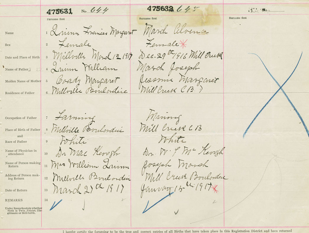 Female Birth Registration: Year: 1917 number: 47500631