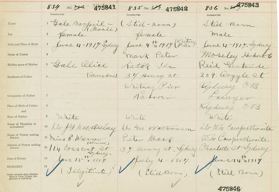 Female Birth Registration: Year: 1917 number: 47500841