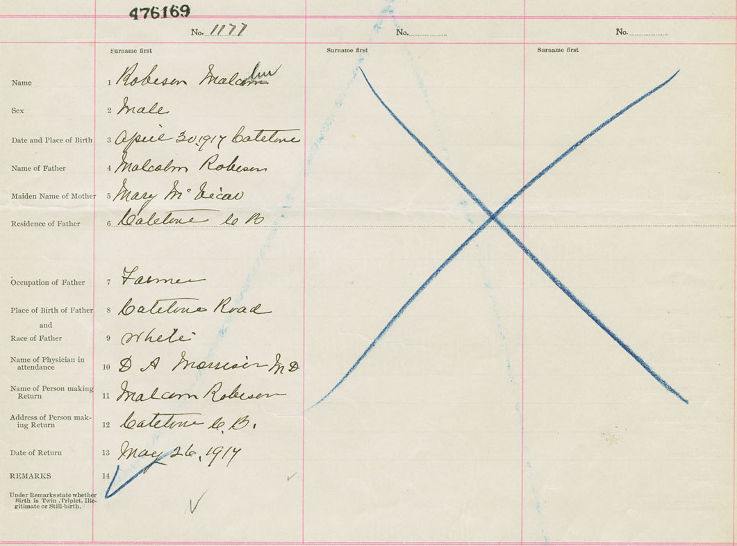 Male Birth Registration: Year: 1917 number: 47600169