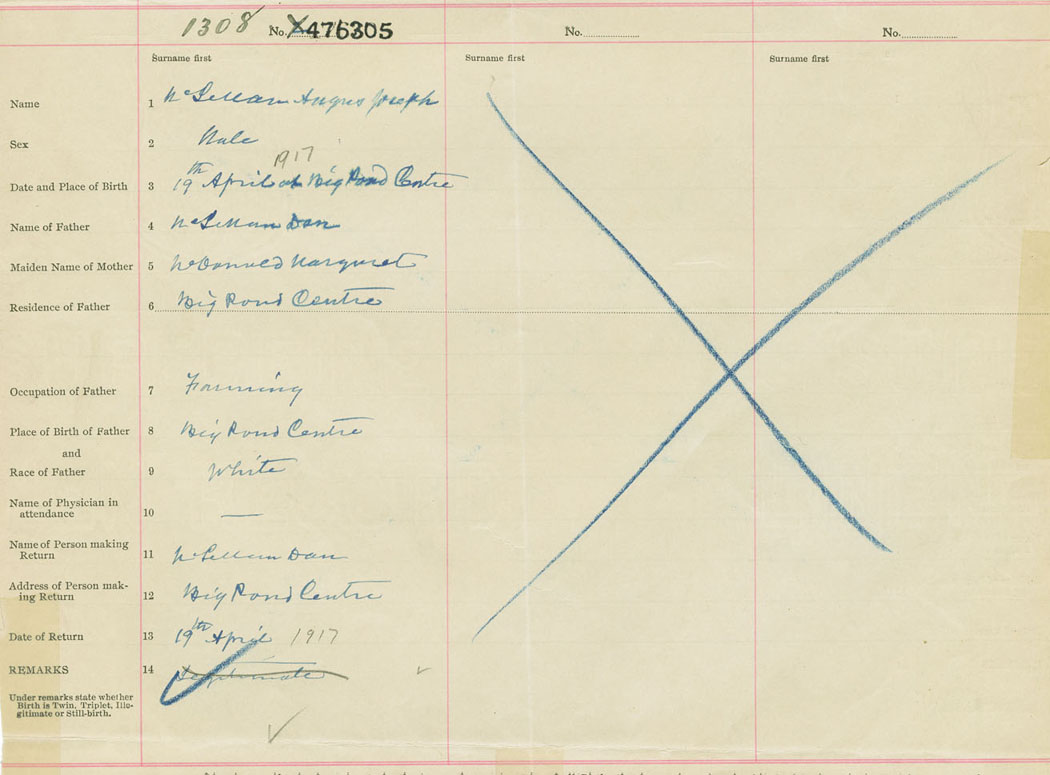 Male Birth Registration: Year: 1917 number: 47600305