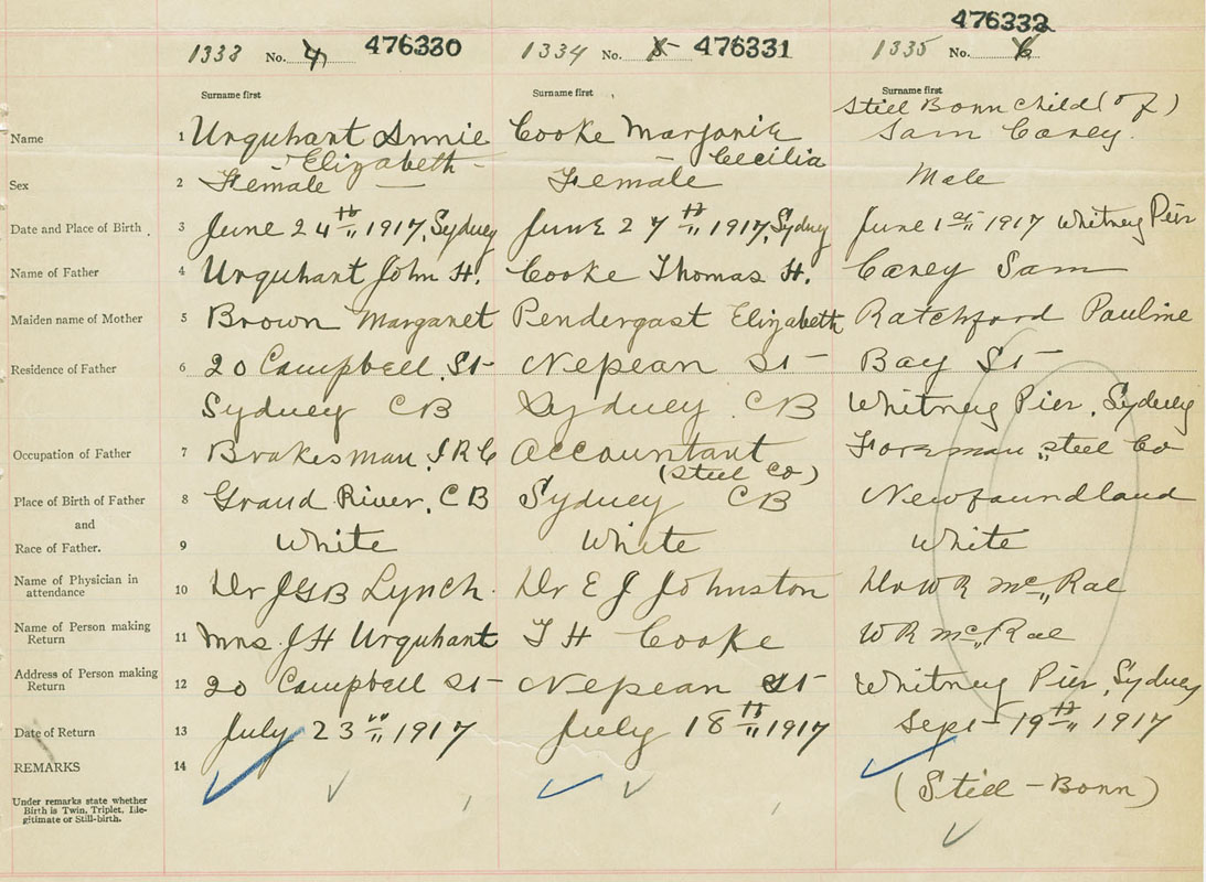 Female Birth Registration: Year: 1917 number: 47600330