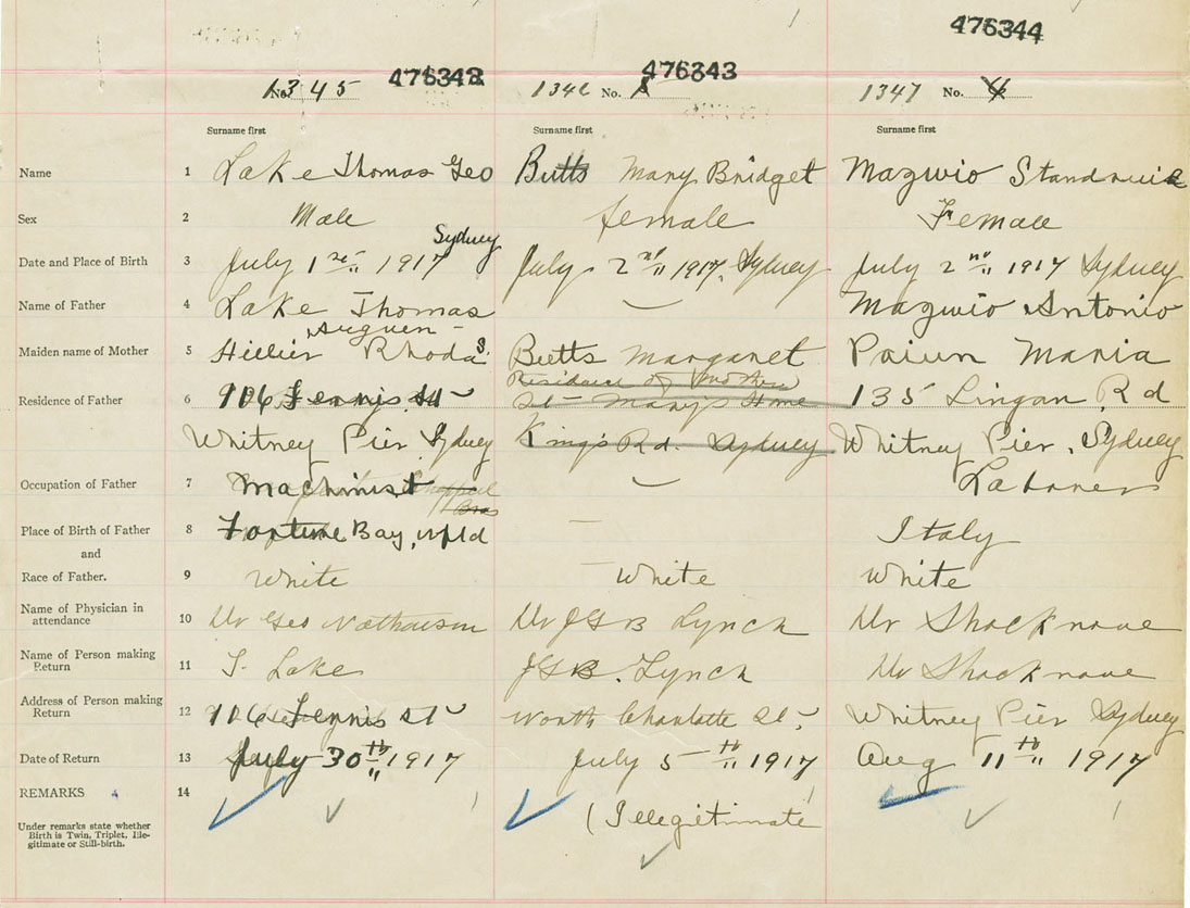 Female Birth Registration: Year: 1917 number: 47600344