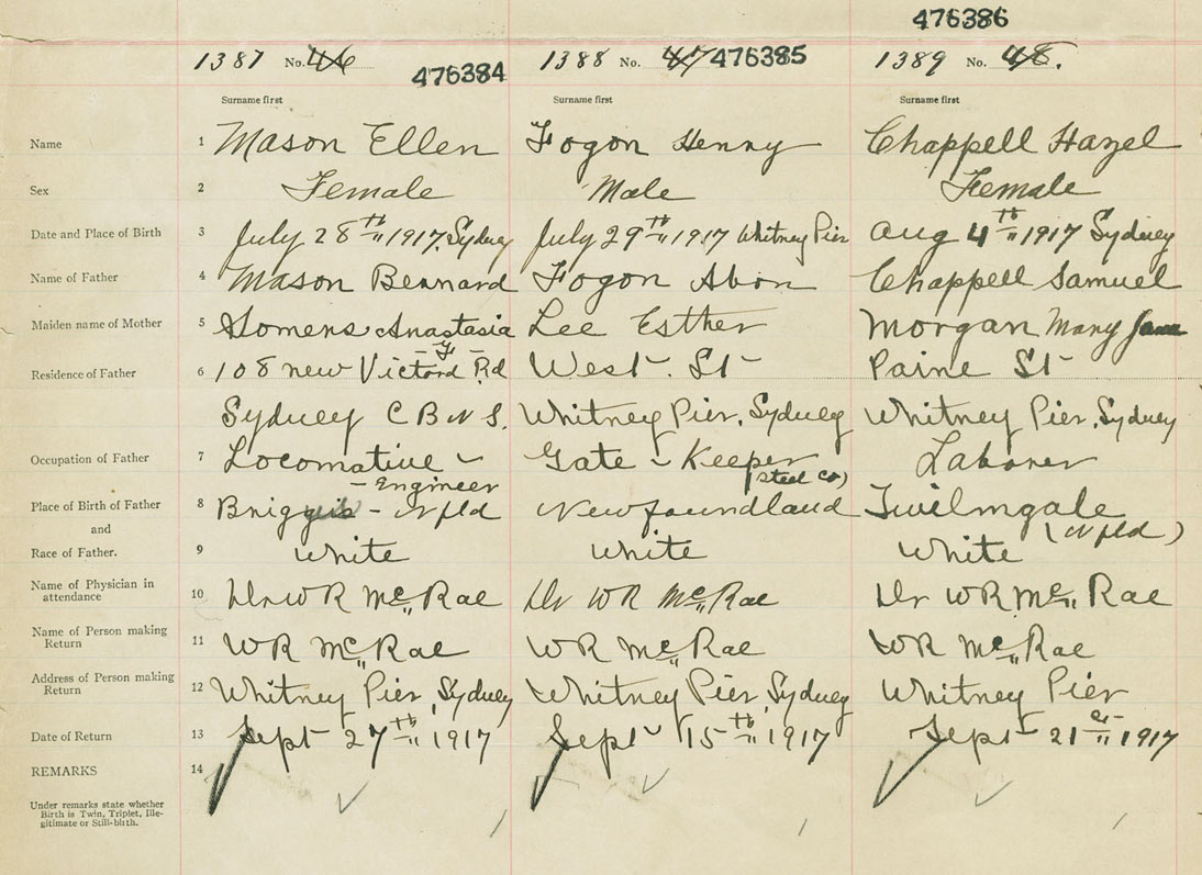 Female Birth Registration: Year: 1917 number: 47600384