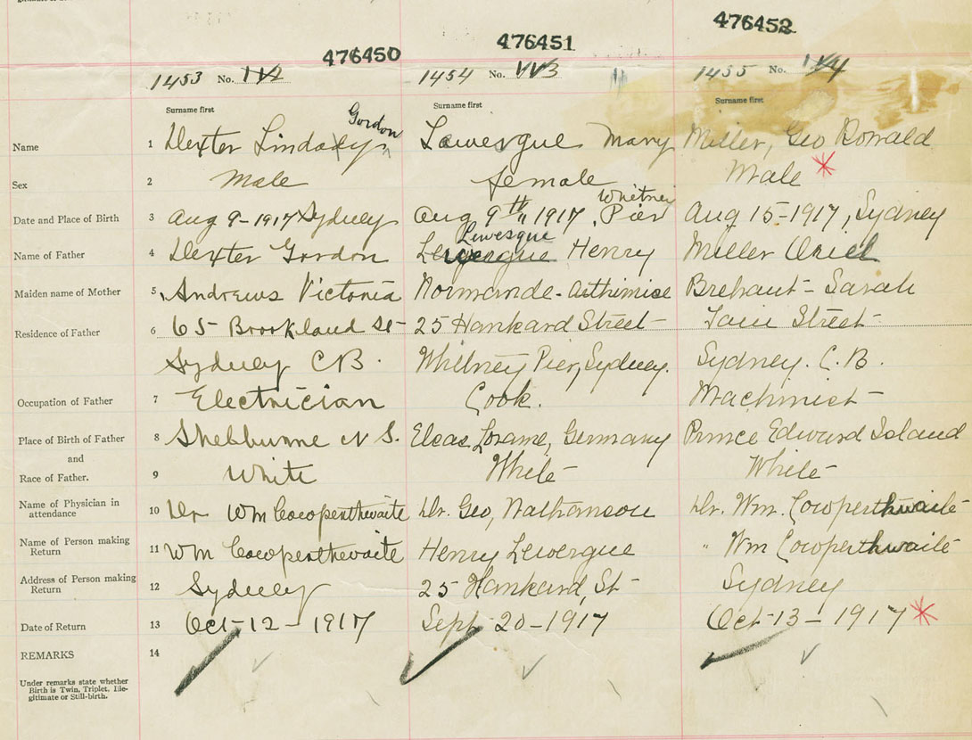 Male Birth Registration: Year: 1917 number: 47600450