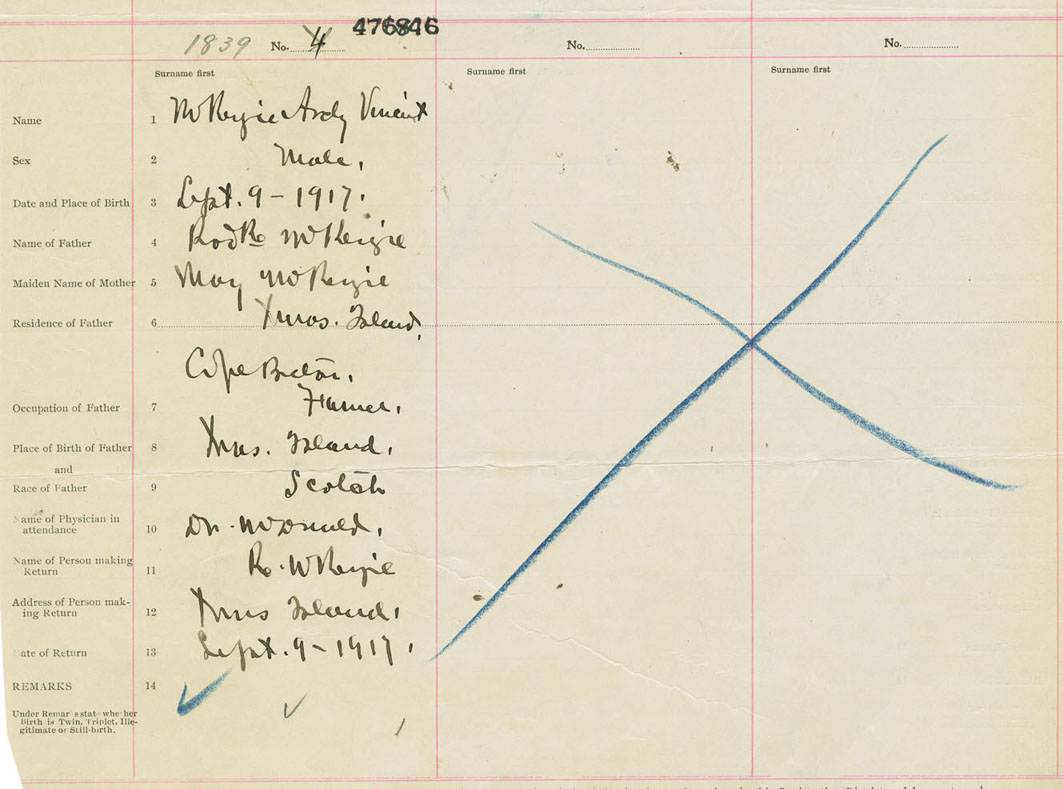 Male Birth Registration: Year: 1917 number: 47600846