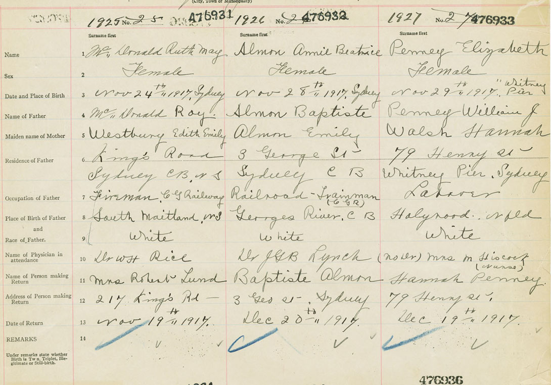 Female Birth Registration: Year: 1917 number: 47600933
