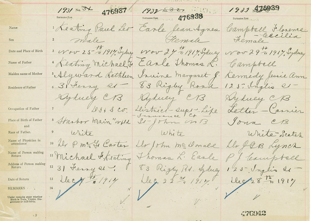 Female Birth Registration: Year: 1917 number: 47600939