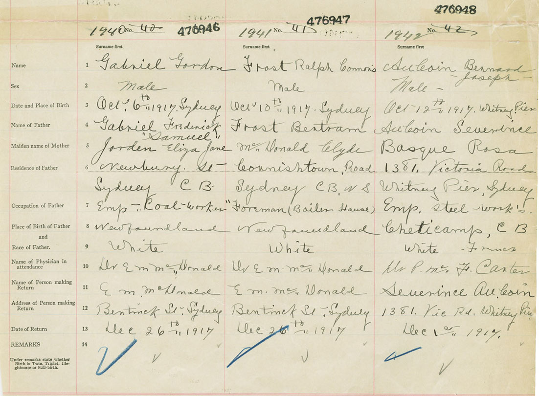 Male Birth Registration: Year: 1917 number: 47600948
