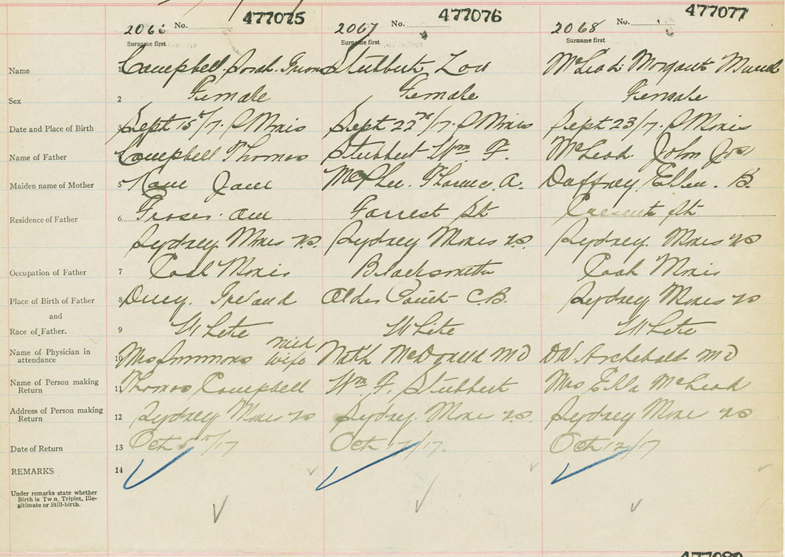 Female Birth Registration: Year: 1917 number: 47700075
