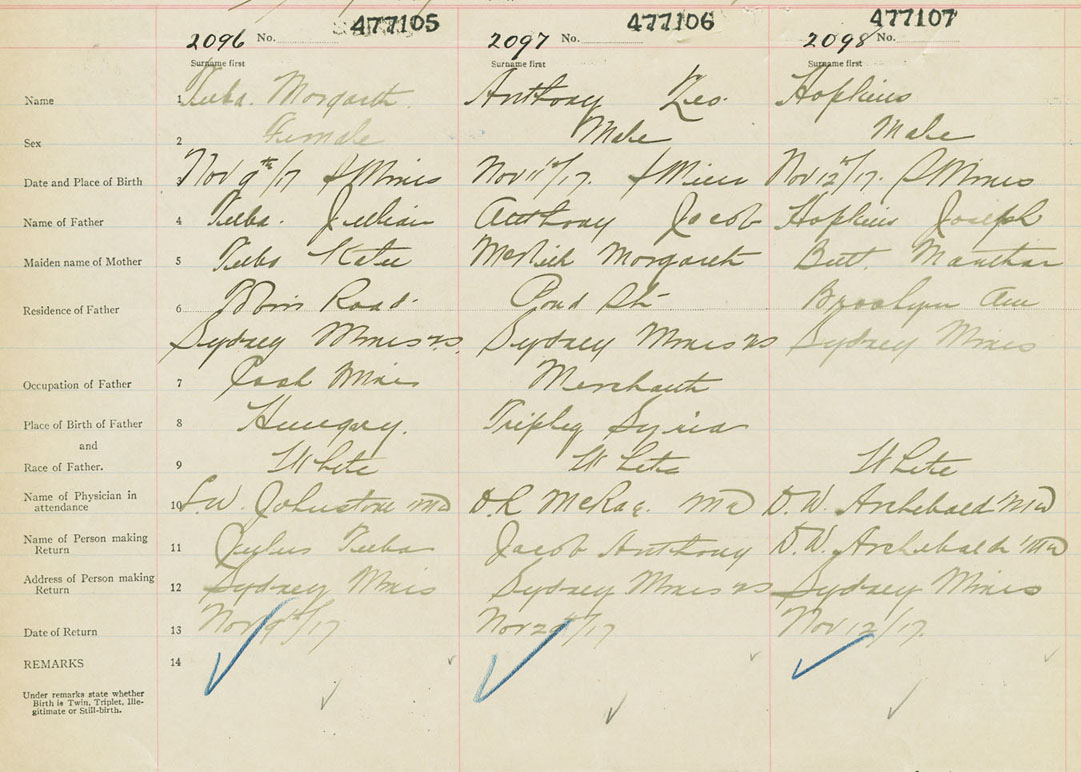 Female Birth Registration: Year: 1917 number: 47700105