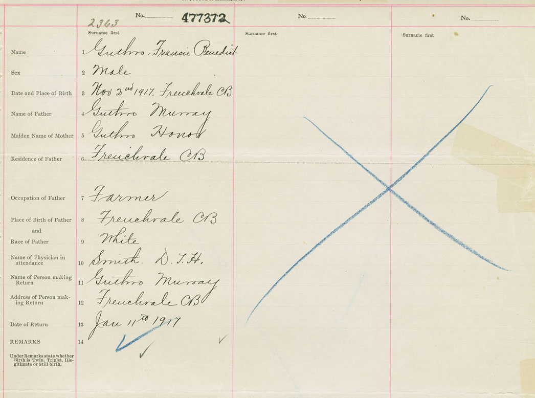 Male Birth Registration: Year: 1917 number: 47700372
