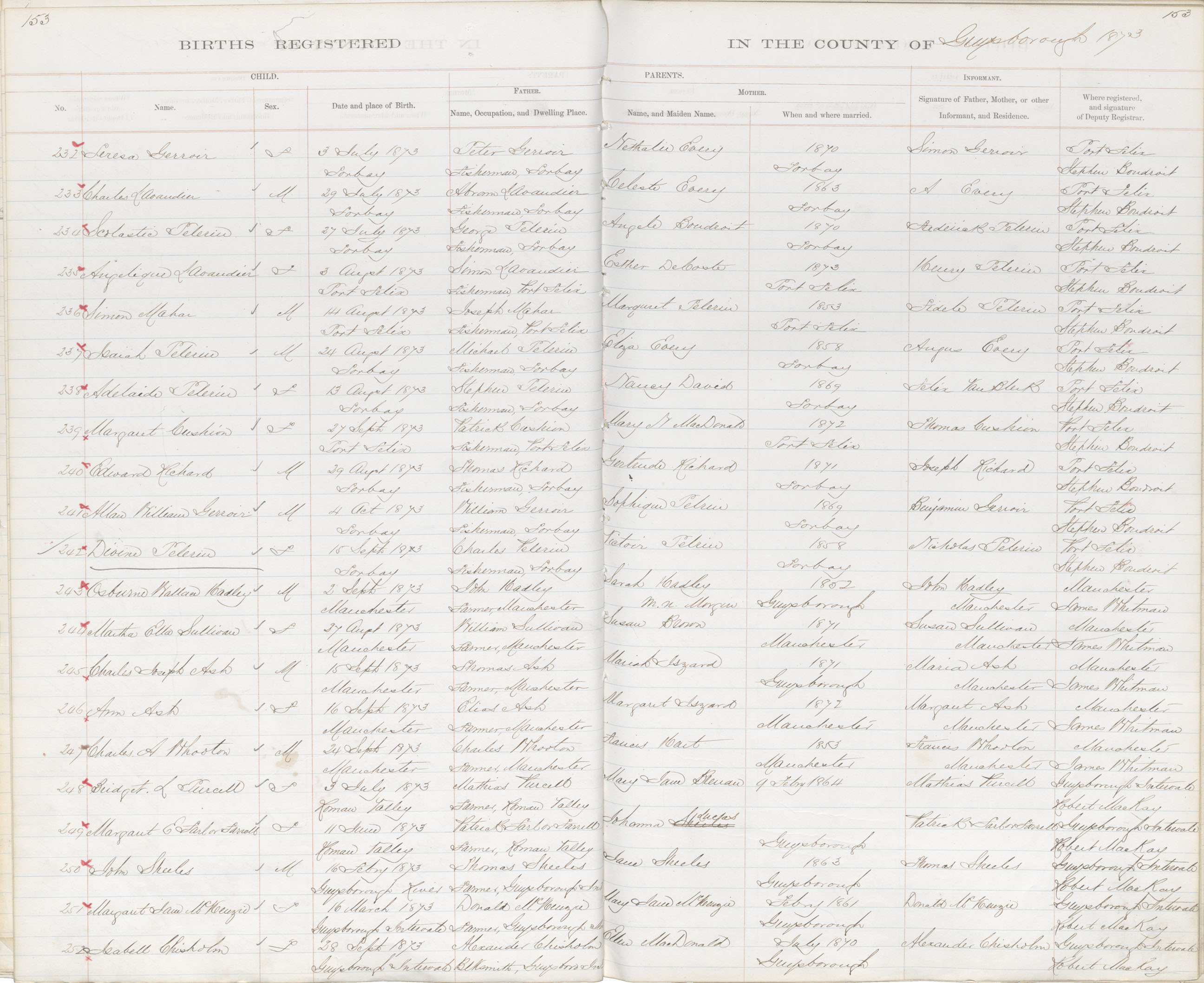 Birth Registration: Year: 1873 book: 1808 page: 153 number: 252