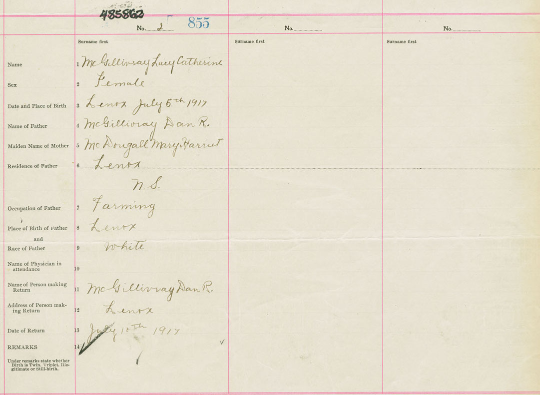 Female Birth Registration: Year: 1917 number: 48500862