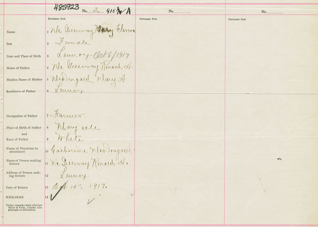 Female Birth Registration: Year: 1917 number: 48500923