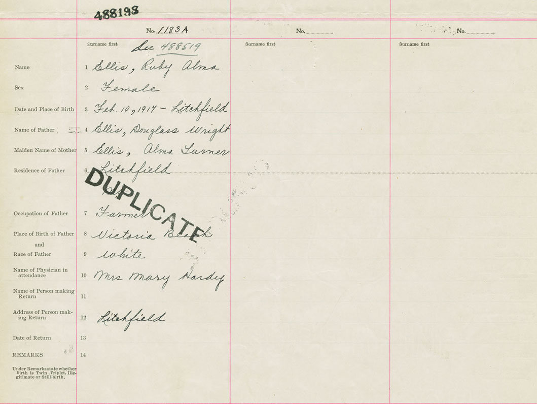 Female Birth Registration: Year: 1917 number: 48800198