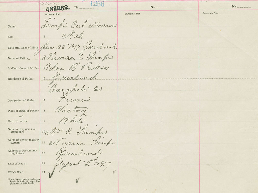 Male Birth Registration: Year: 1917 number: 48800282