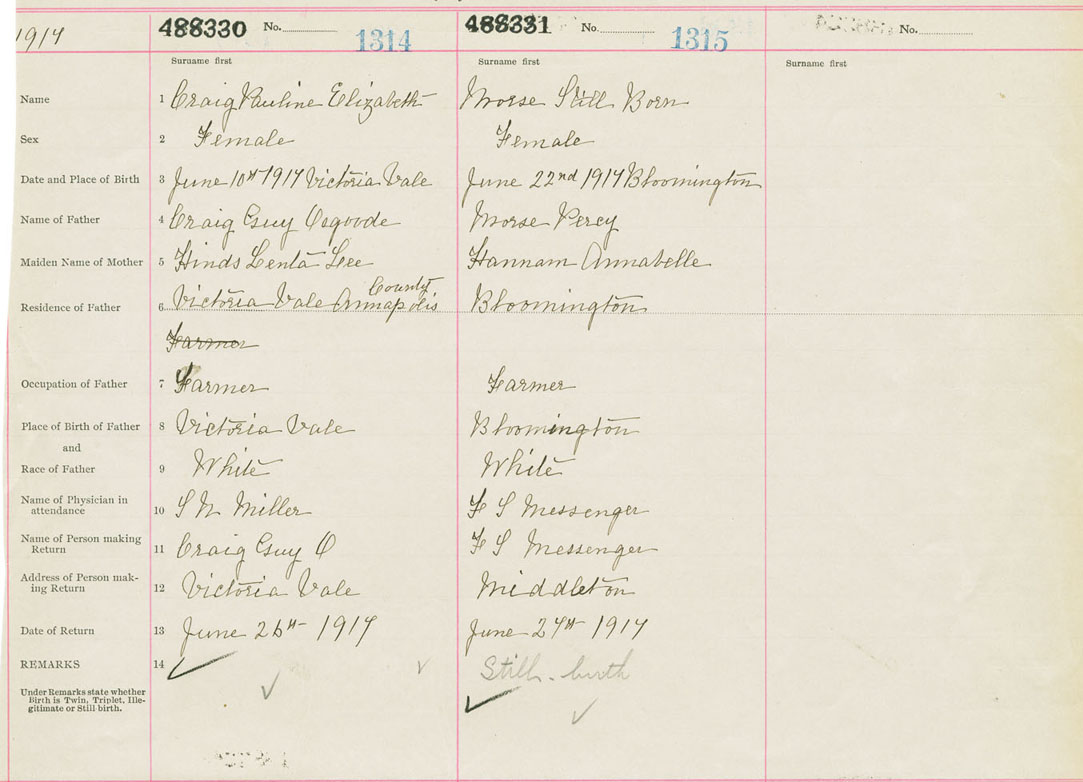 Female Birth Registration: Year: 1917 number: 48800331