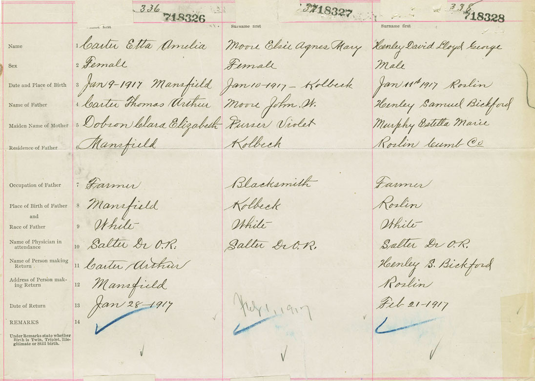 Male Birth Registration: Year: 1917 number: 71800328