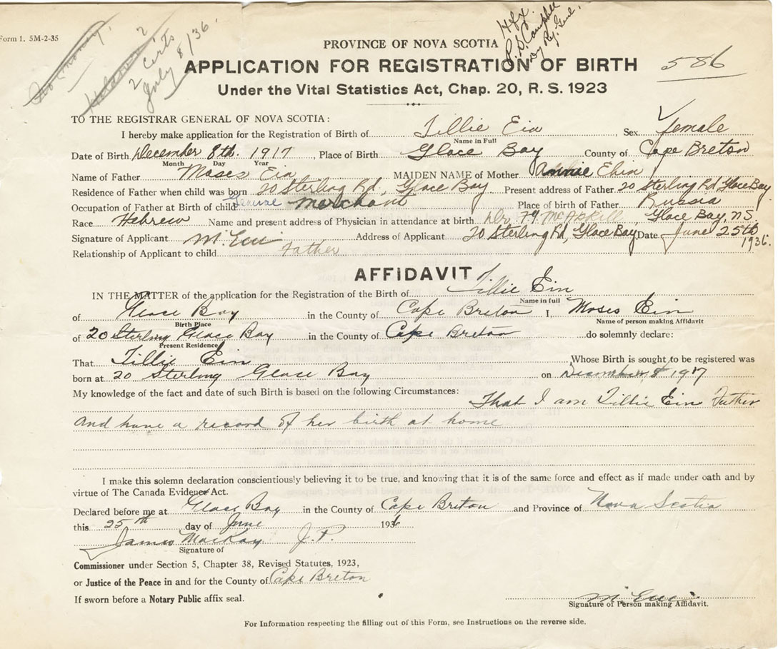 Nova Scotia Archives — https://archives.novascotia.ca/vital-statistics/birth/?ID=357564