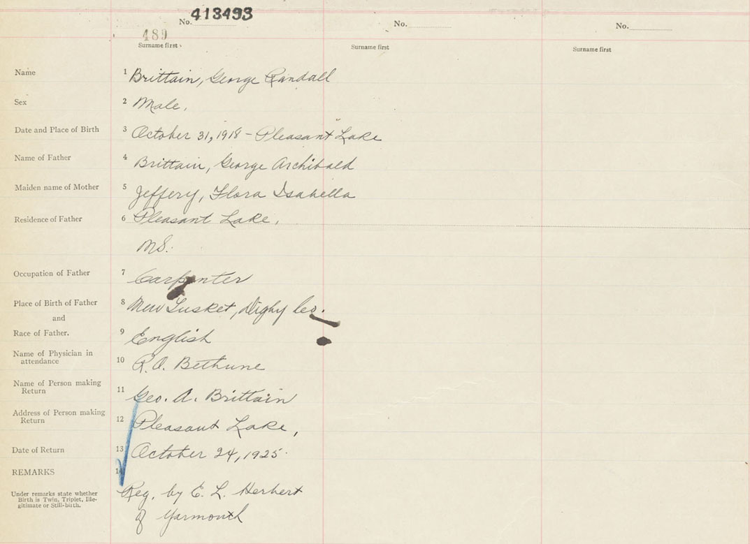 Male Birth Registration: Year: 1918 number: 41300493
