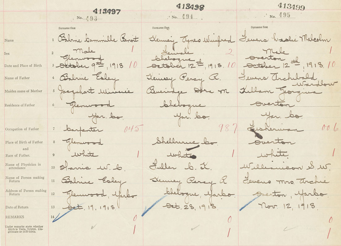 Male Birth Registration: Year: 1918 number: 41300499