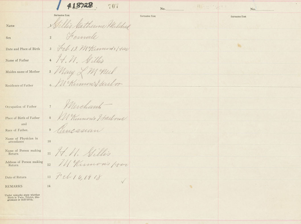 Female Birth Registration: Year: 1918 number: 41800728