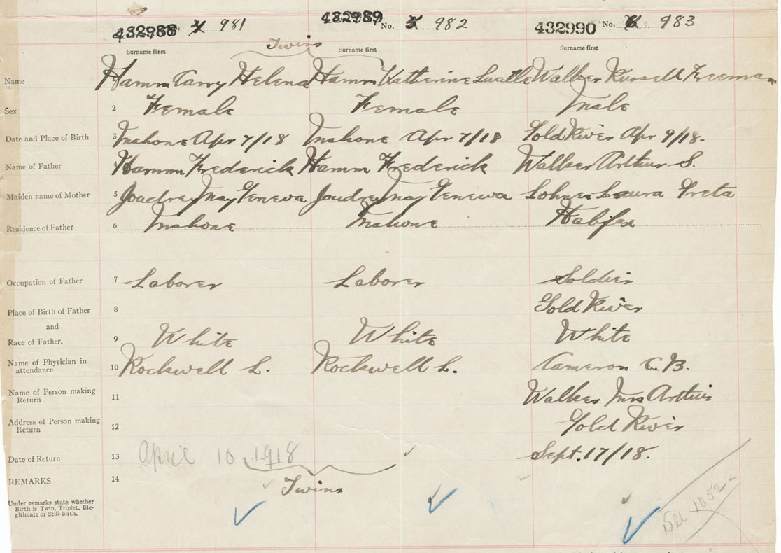 Male Birth Registration: Year: 1918 number: 43200990