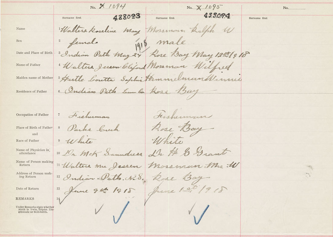 Male Birth Registration: Year: 1918 number: 43300094