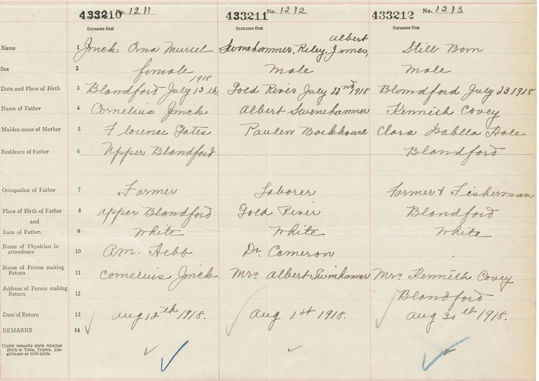 Female Birth Registration: Year: 1918 number: 43300210