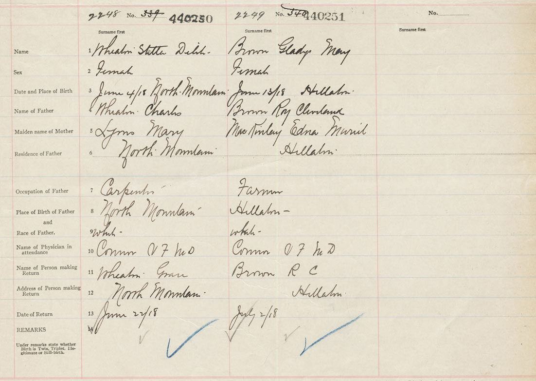 Female Birth Registration: Year: 1918 number: 44000251