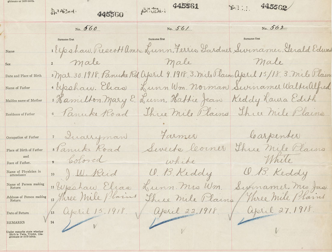 Male Birth Registration: Year: 1918 number: 44500562