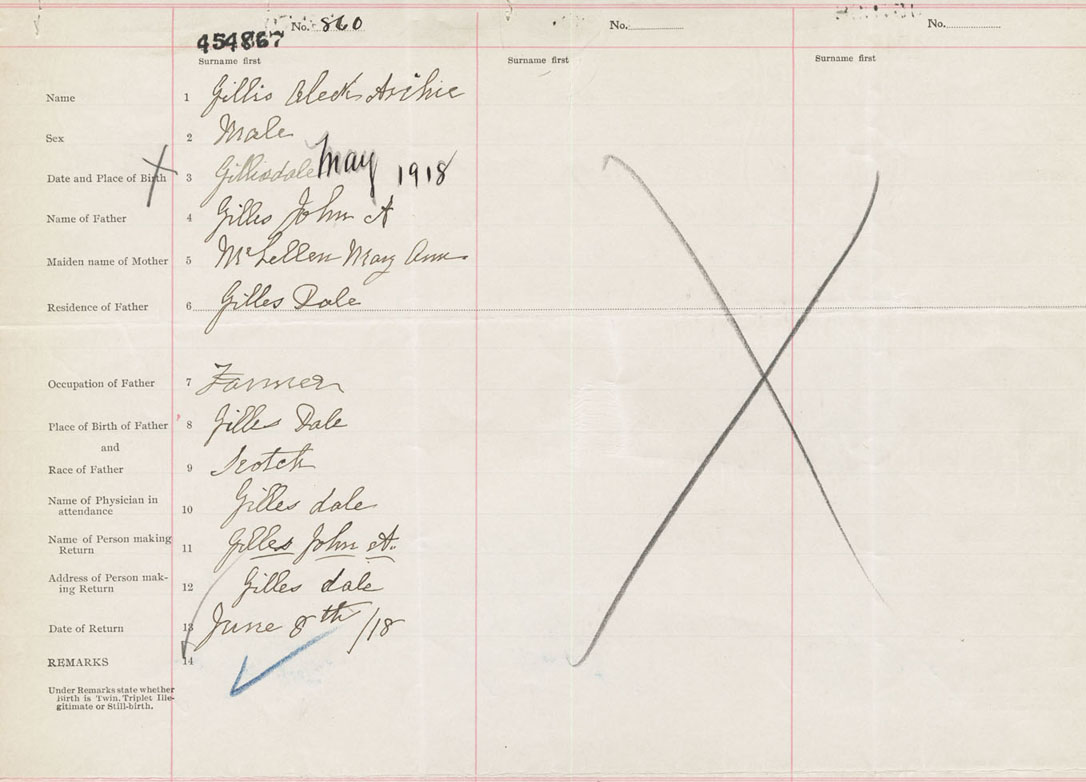 Male Birth Registration: Year: 1918 number: 45400867
