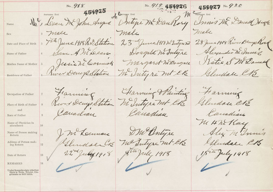 Male Birth Registration: Year: 1918 number: 45400925