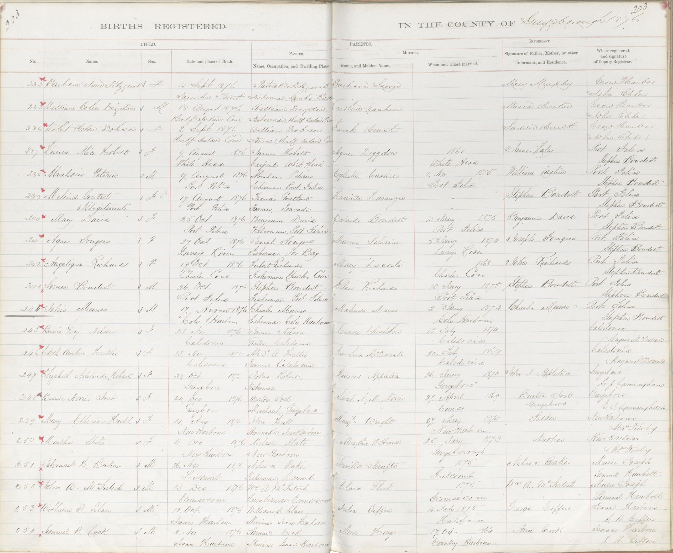 Birth Registration: Year: 1876 book: 1808 page: 203 number: 254