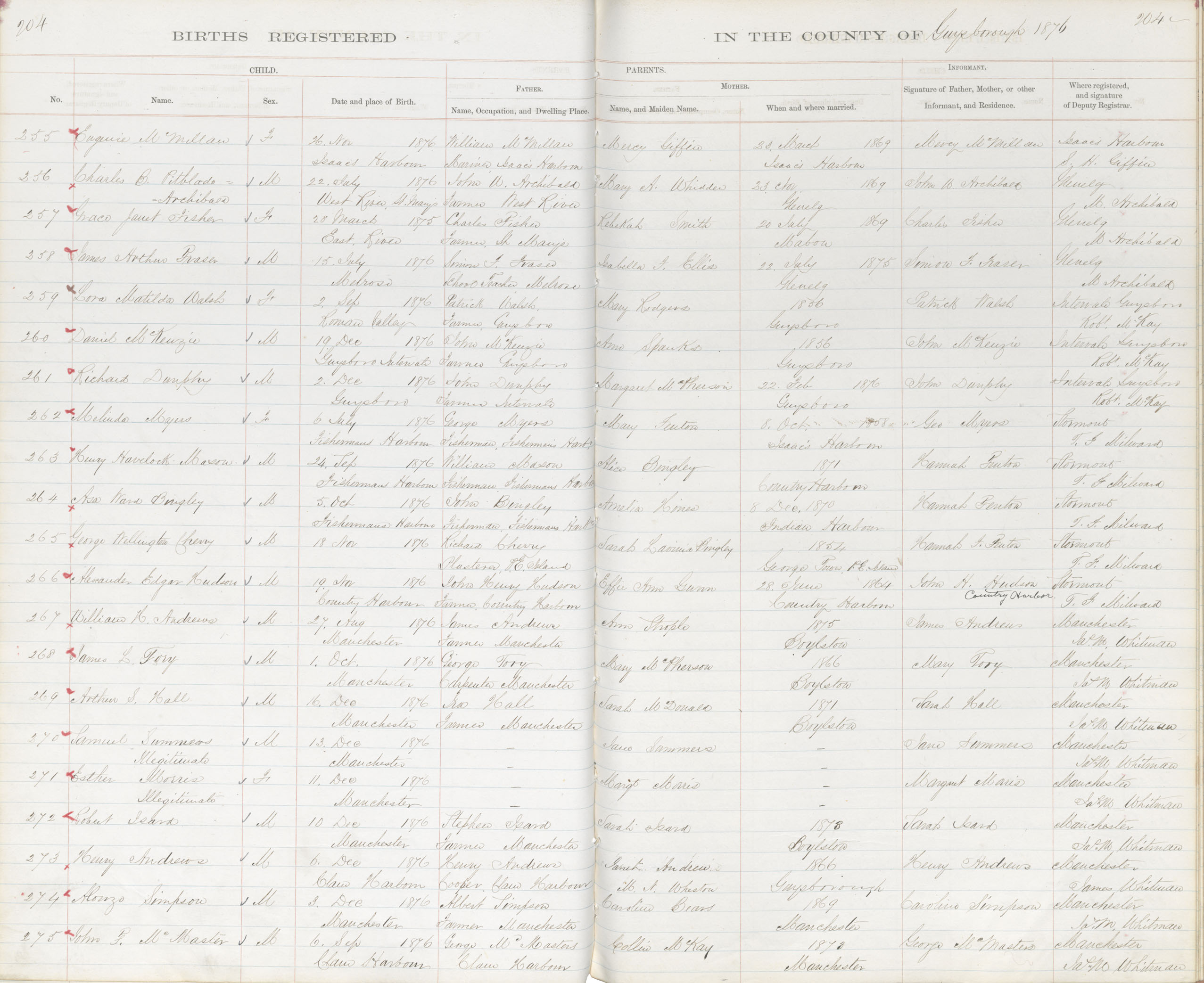 Birth Registration: Year: 1876 book: 1808 page: 204 number: 274