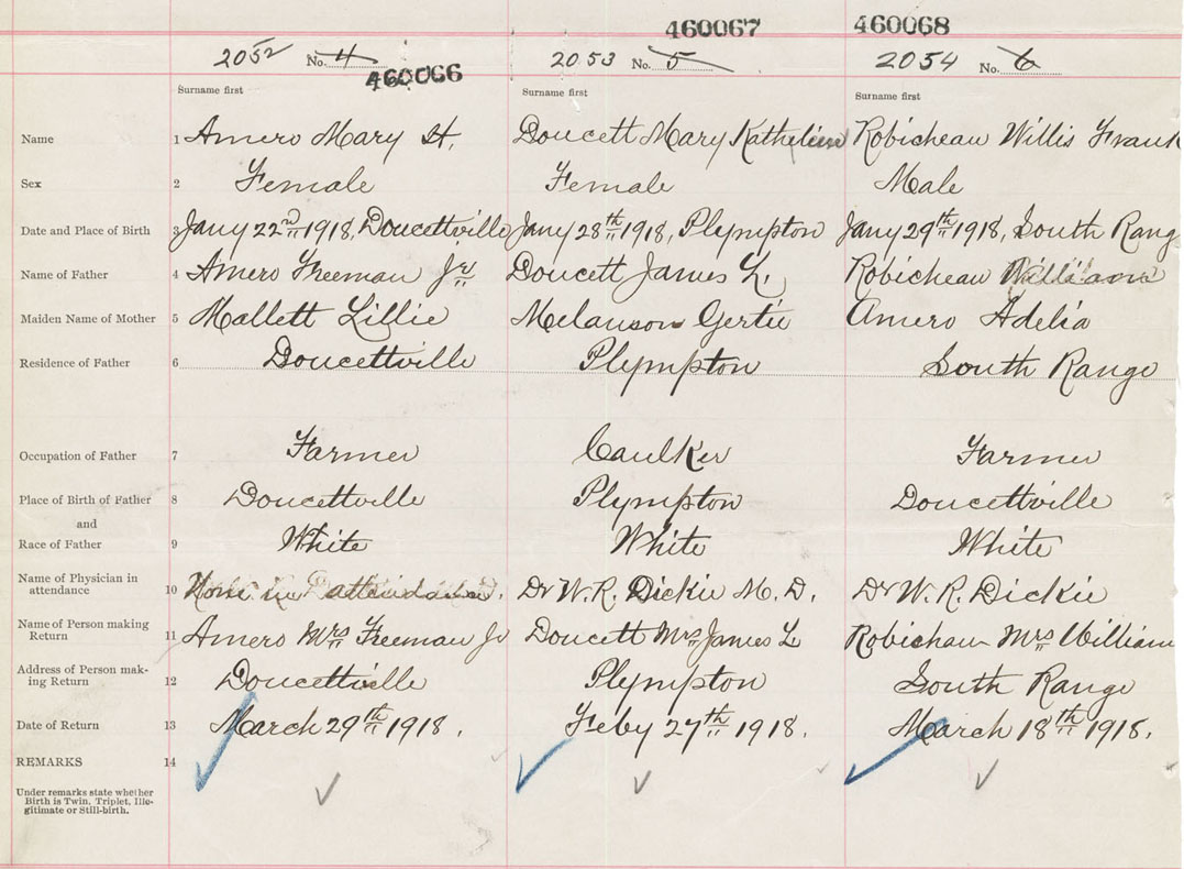 Female Birth Registration: Year: 1918 number: 46000066