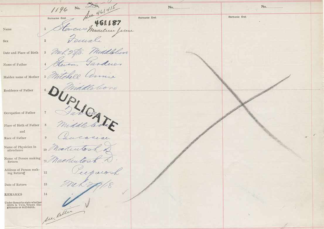 Female Birth Registration: Year: 1918 number: 46100187