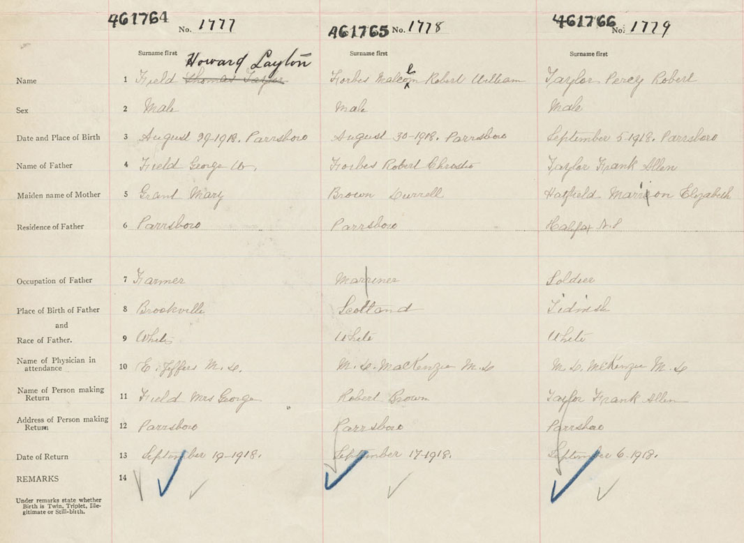 Male Birth Registration: Year: 1918 number: 46100764