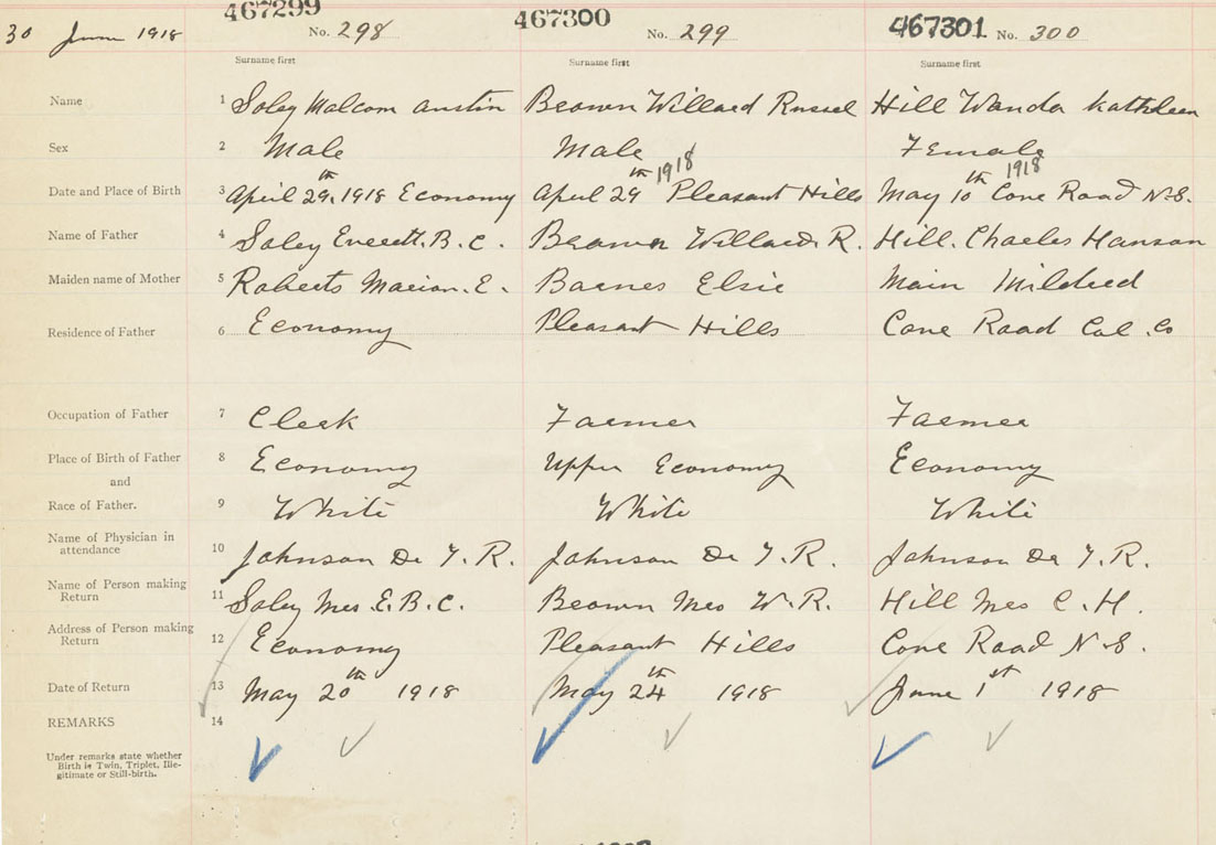 Female Birth Registration: Year: 1918 number: 46700301