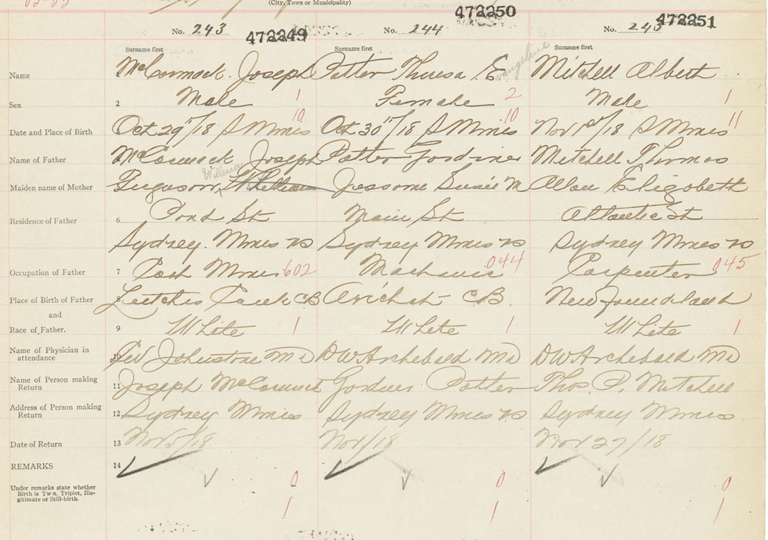 Male Birth Registration: Year: 1918 number: 47200251